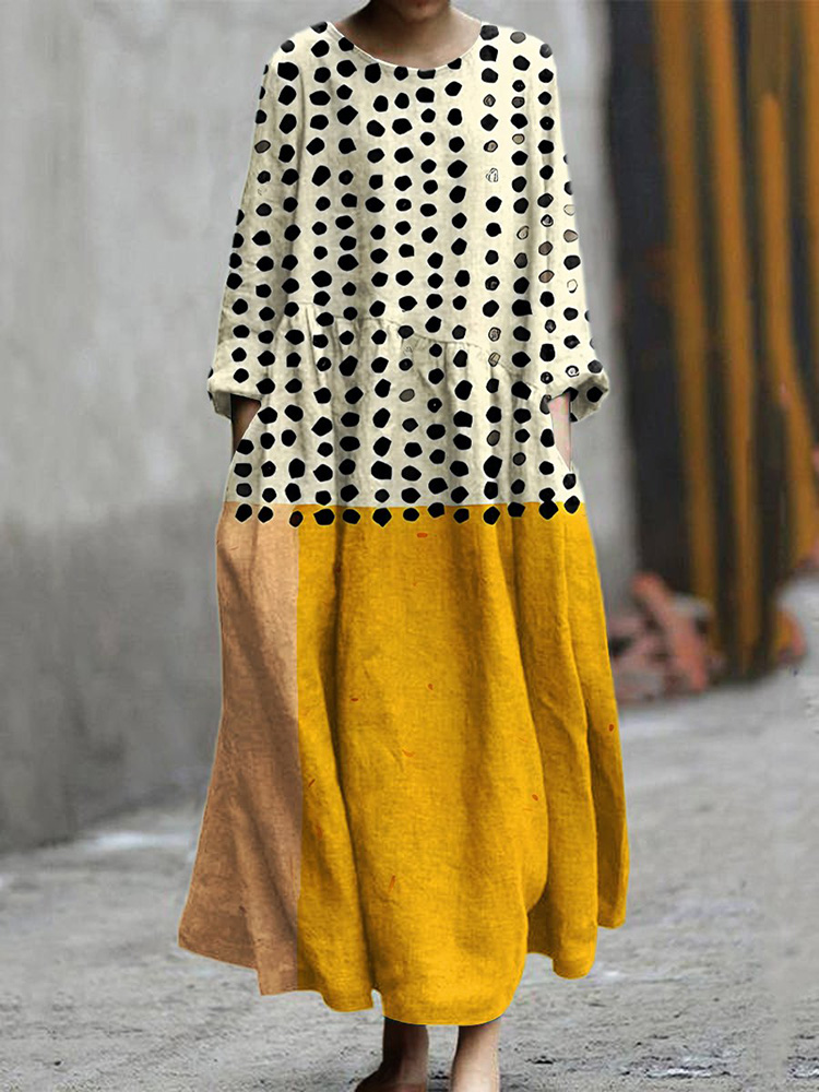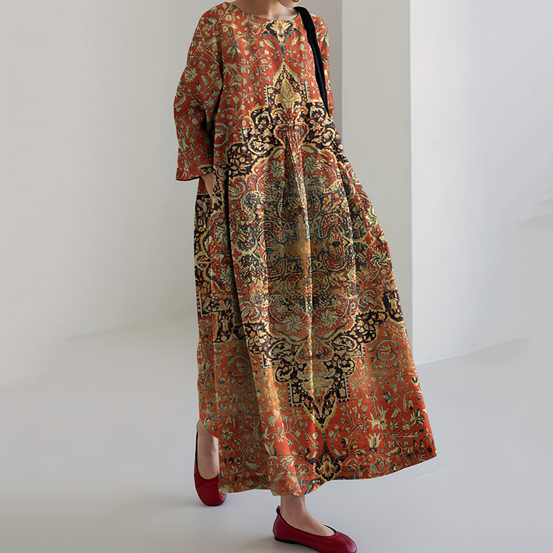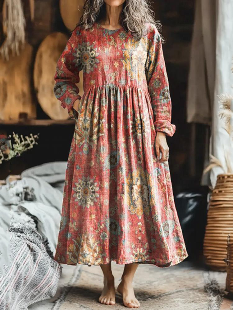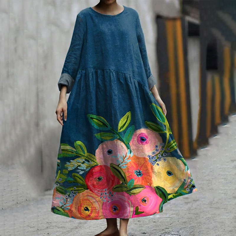 Vintage Totem Floral Pattern Printed Cotton And Linen Dress