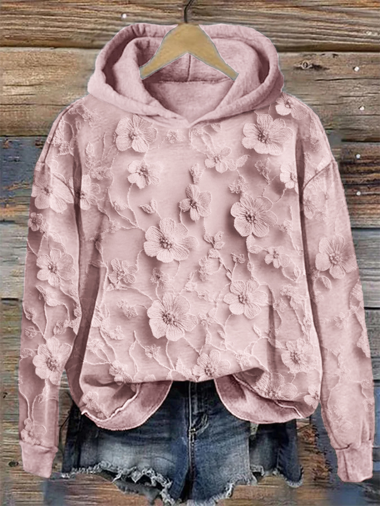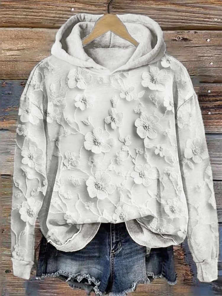 Cherry Blossom Japanese Lino Pattern Cozy Hooded Cardigan
