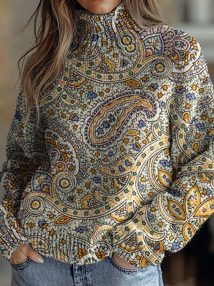 Vintage Paisley Pattern Knitted Warm Sweater