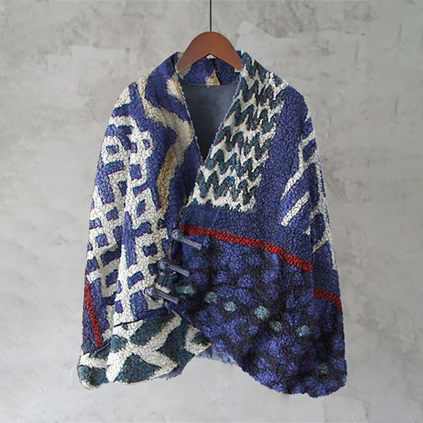 Japanese Traditional Sashiko Art Cozy Hooded Cardigan