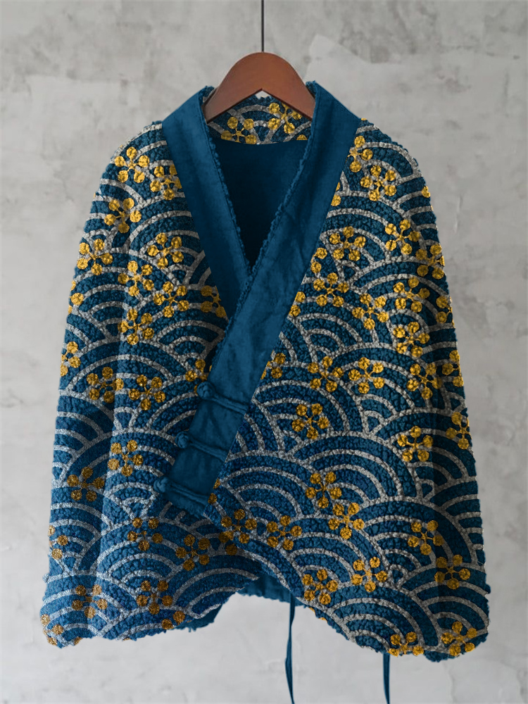 Vintage Floral Sea Wave Japanese Art Women'S Kimono Cardigan