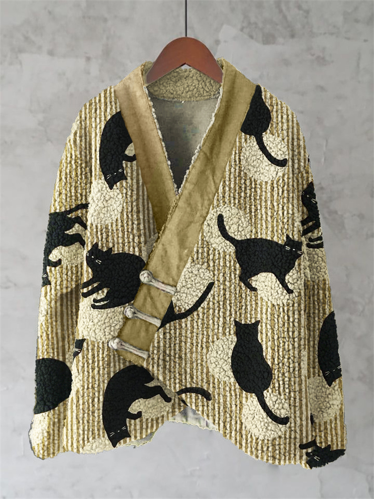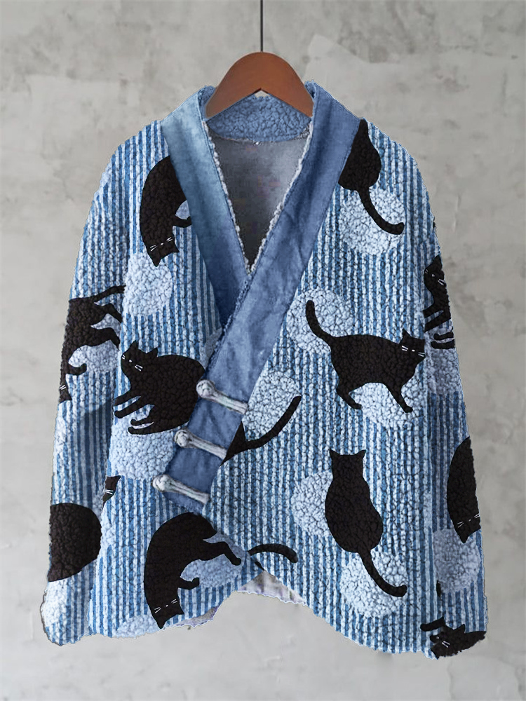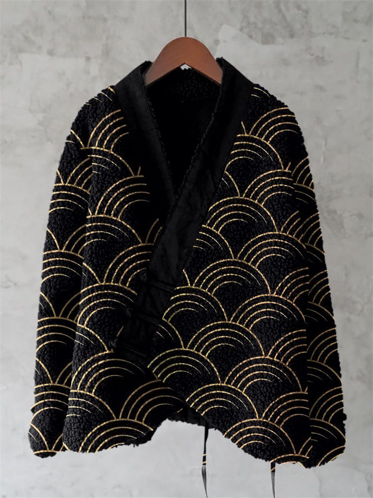 Japanese Traditional Sashiko Art Fleece Kimono Cardigan