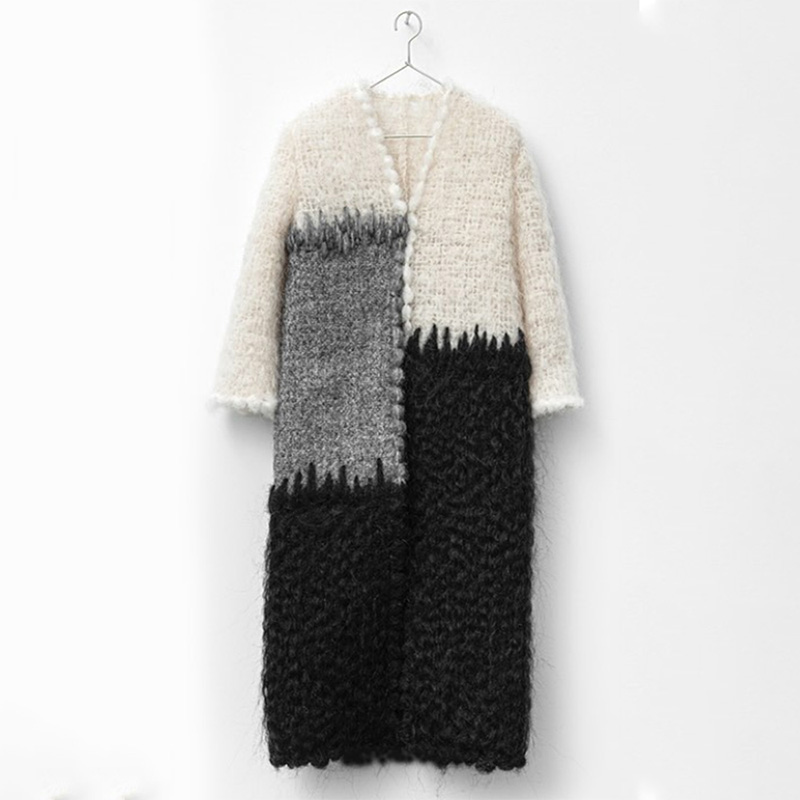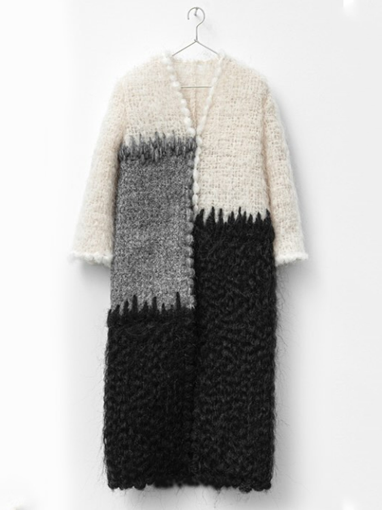 Unique Repairing Colorblock Fiber Art Cozy Knit Cardigan