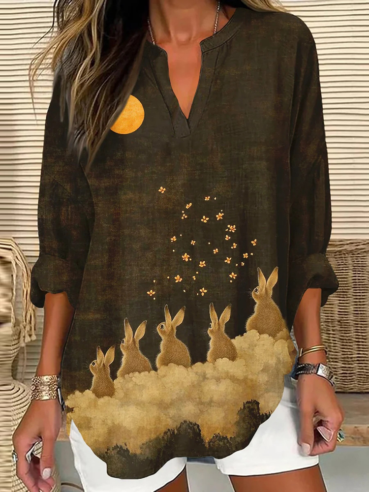 Vintage Easter Bunny Print Art Linen Blend Cozy Tunic