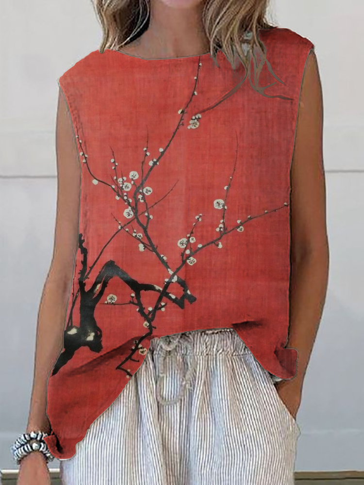 Simple Plum Blossom Japanese Art Linen Blend Tank Top