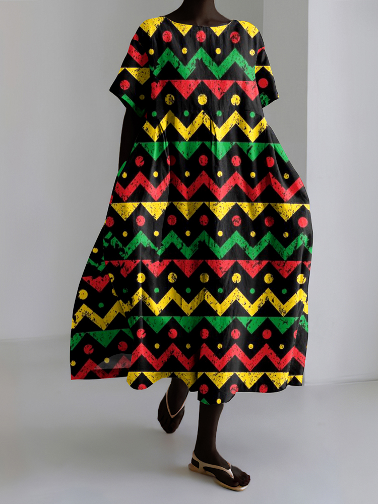 Juneteenth Geometric Art Print Short Sleeve Midi Dress