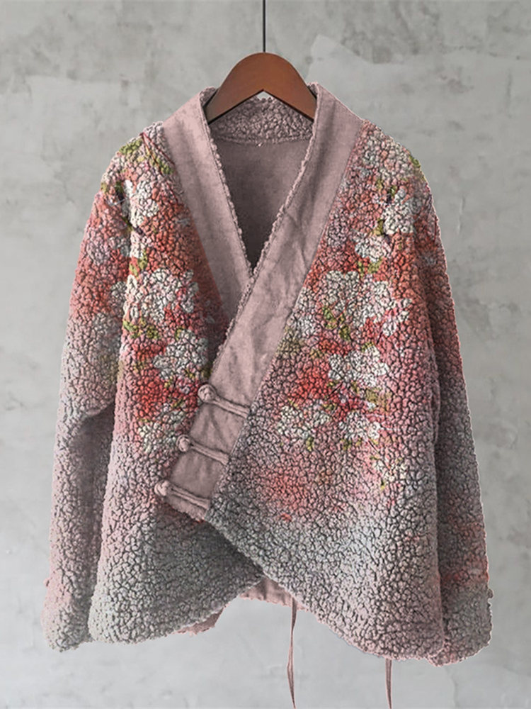 Japanese Style Cherry Blossom Art Plush Cardigan