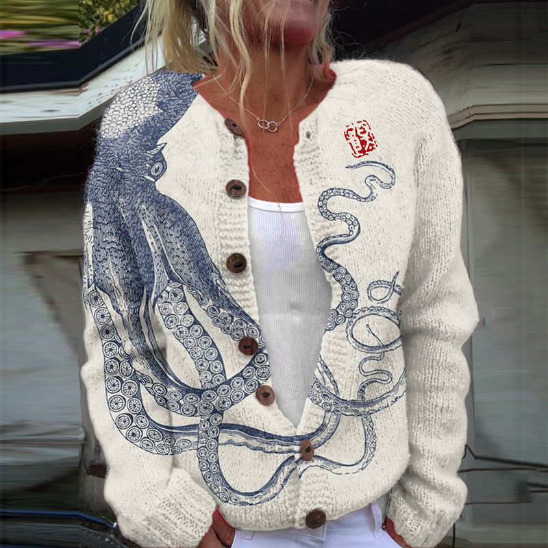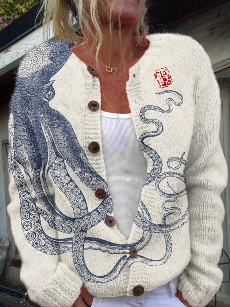 Japanese Octopus Art Print Women's Soft Sweater Cardigan