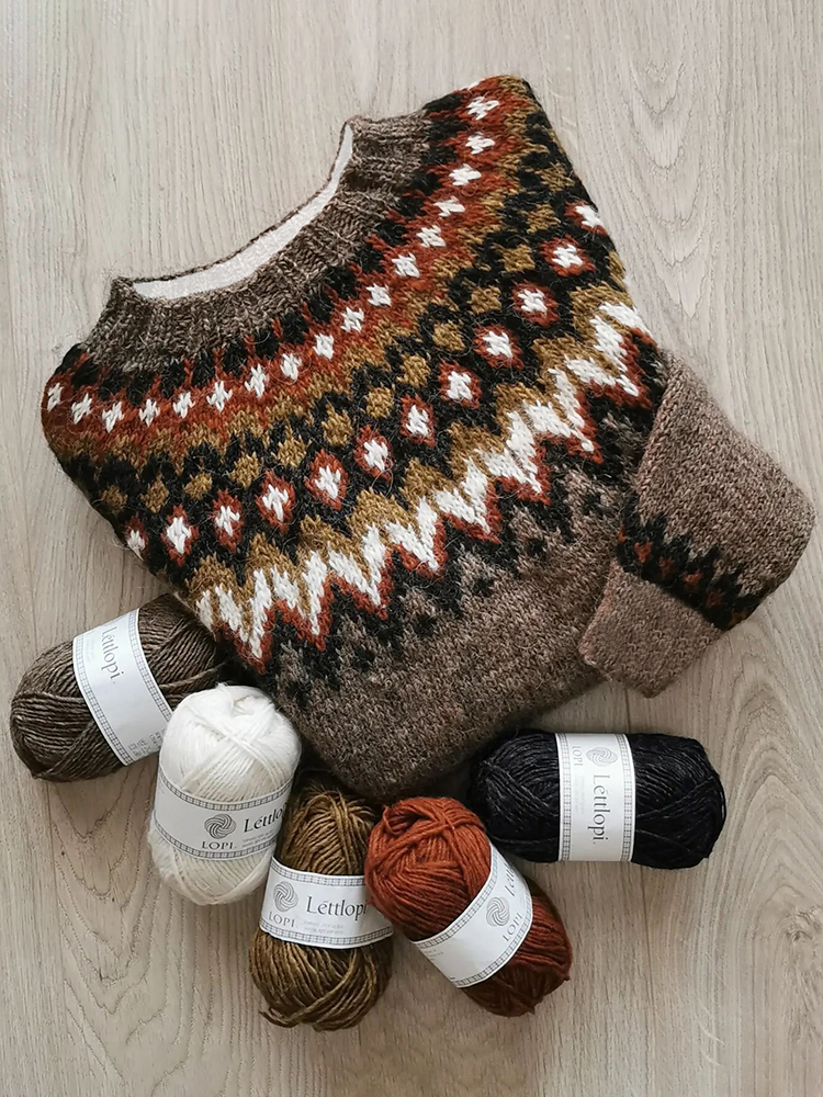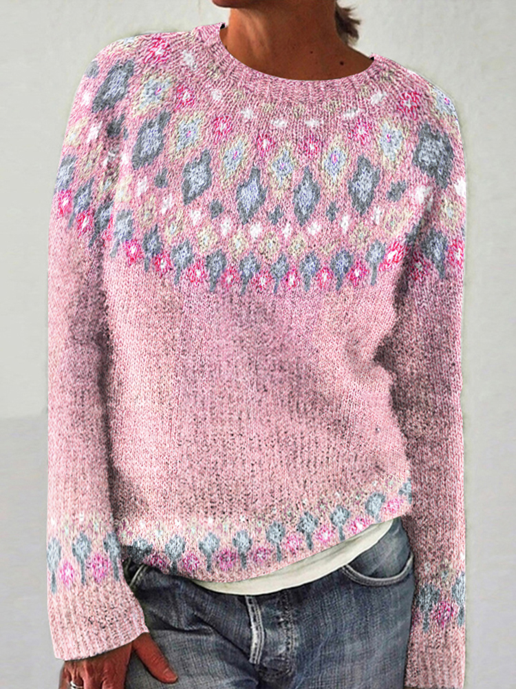 Vintage Geometric Contrast Pattern Print Crew Neck Sweater