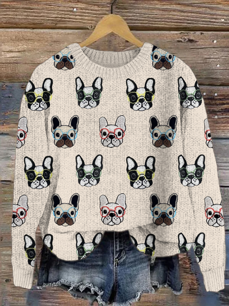 Funny Dogs With Glasses Print Women's Soft Sweater
