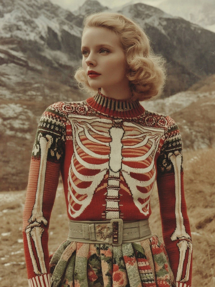 Women's Vintage Skeleton Art Cozy High Neck Ugly Sweater