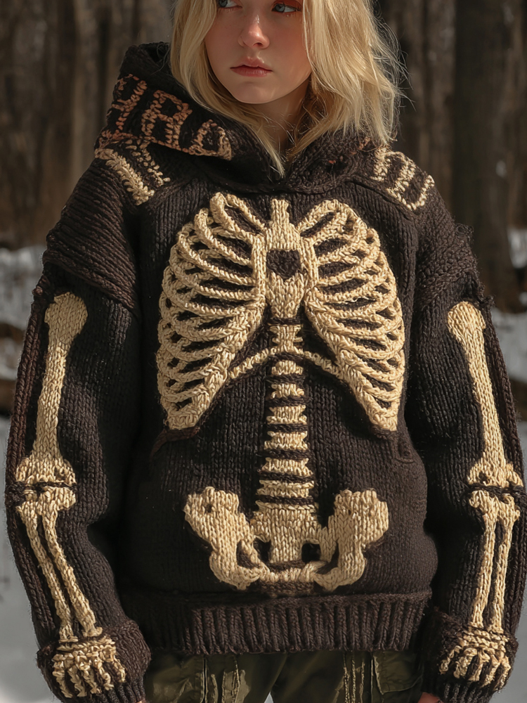 Vintage Halloween Anatomy Chunky Knitted Hooded Sweater