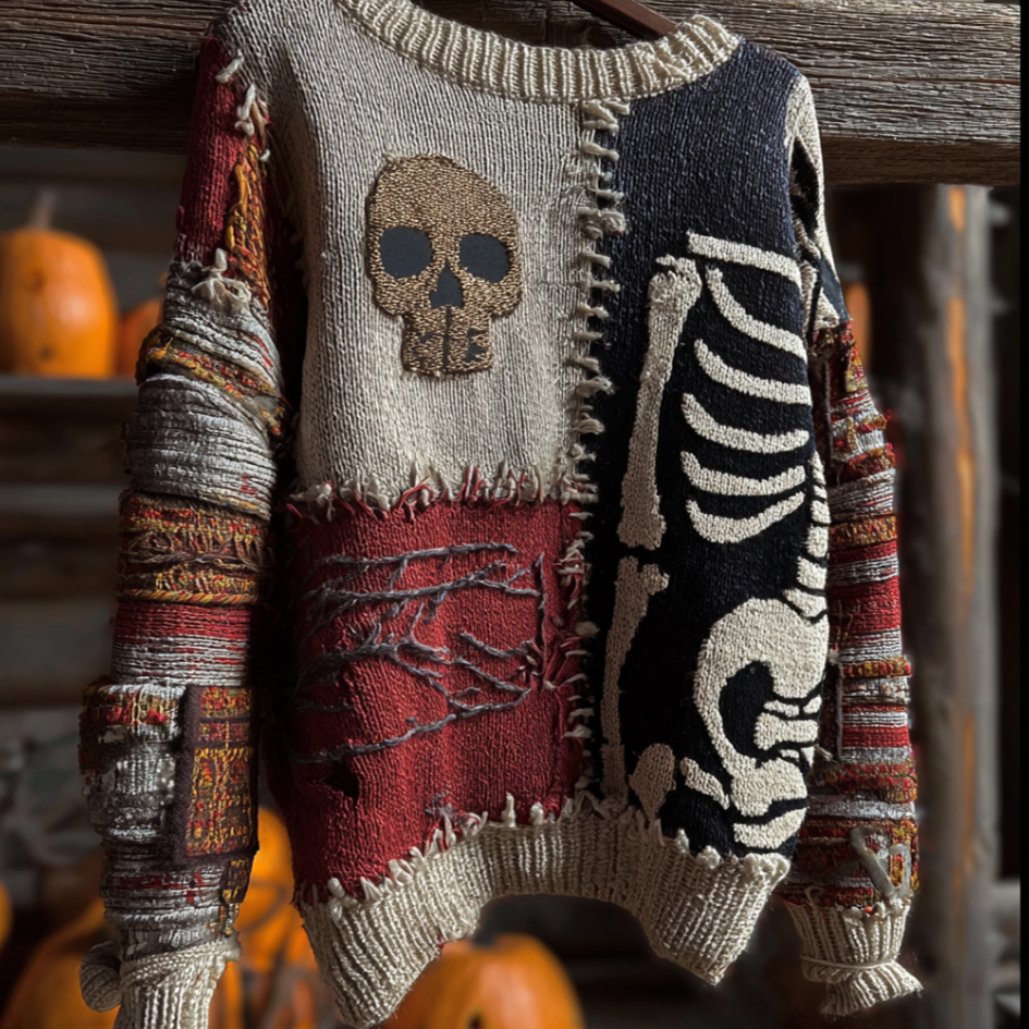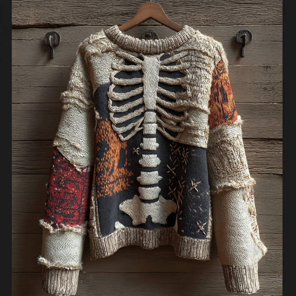 Women's Vintage Skull & Skeleton Art Crew Neck Cozy Sweater