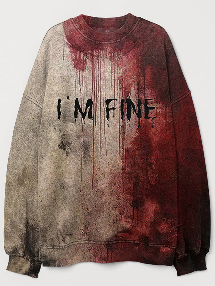 Bloody I AM FINE Printed Vintage Washed Casual Sweatshirt