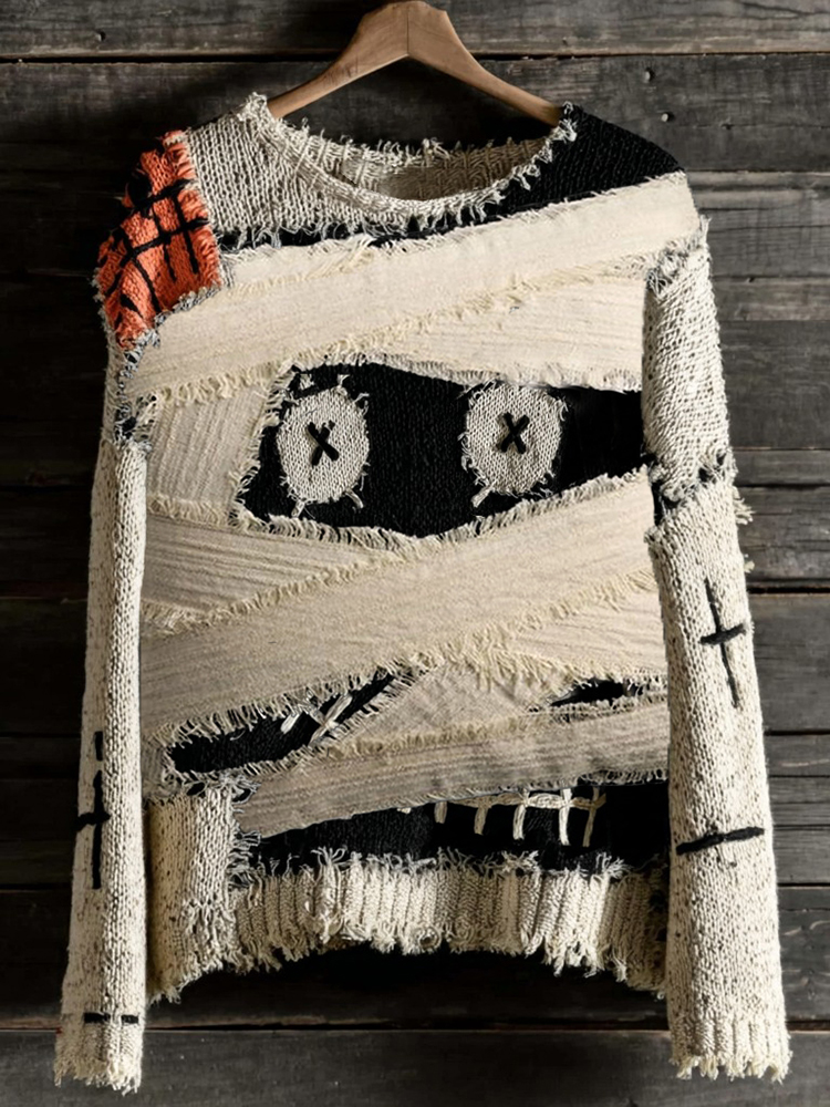 Halloween Mummy Spooky Face Cozy Knit Sweater