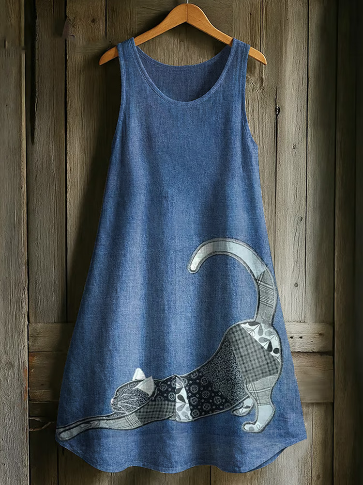 Women's Japanese Art Embroidery Floral Cat Print Dress