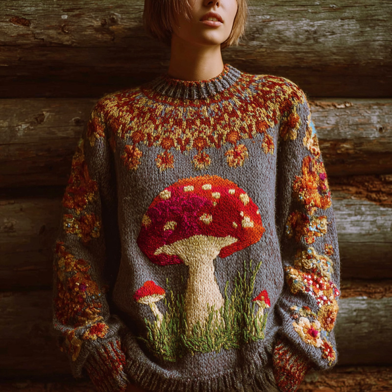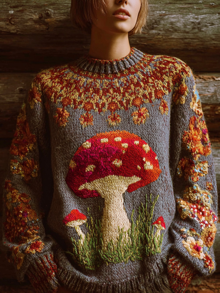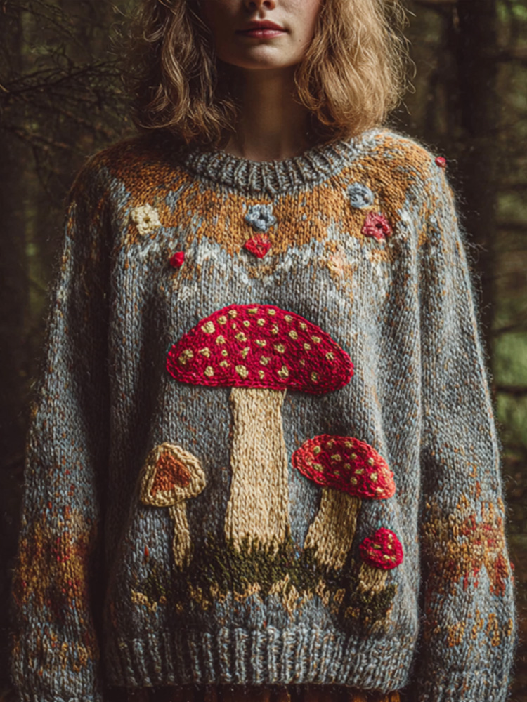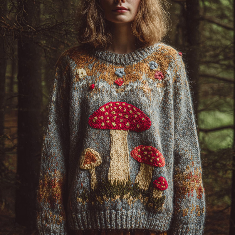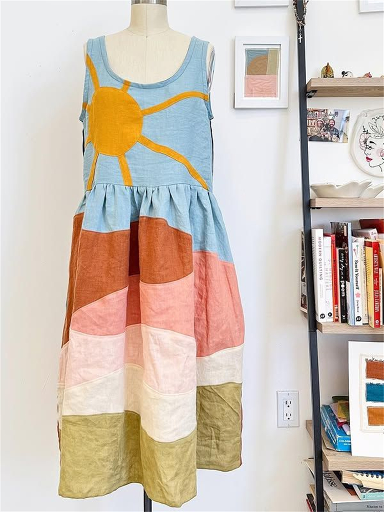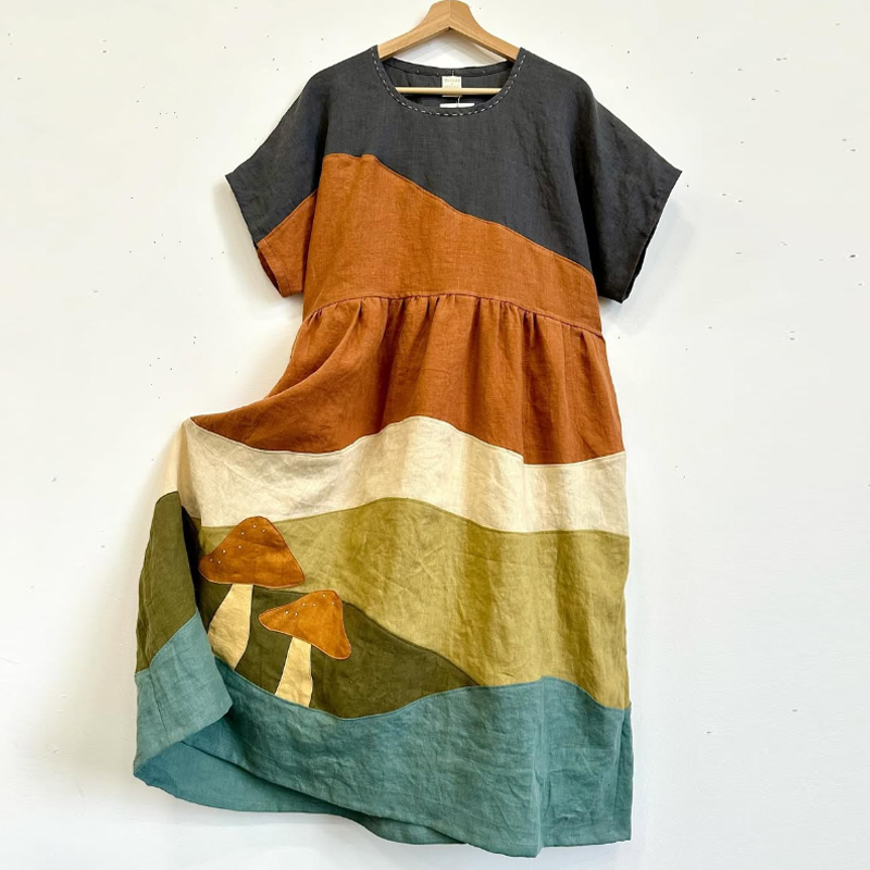 Mushroom Landscape Colorblock Patchwork Linen Dress