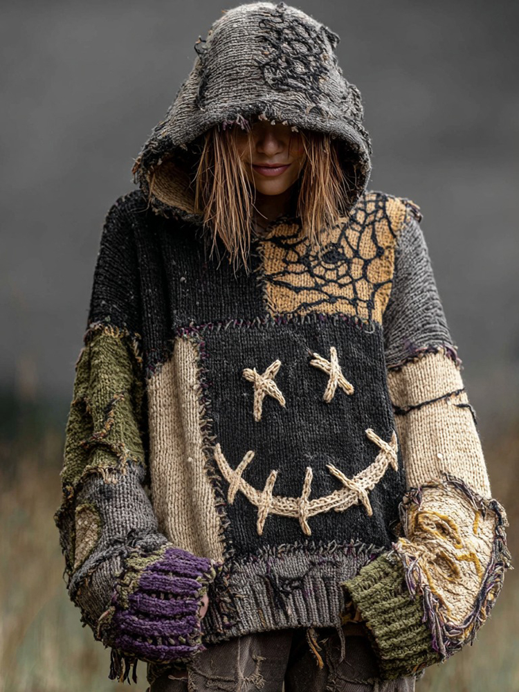 Halloween Spooky Ghost Inspired Patchwork Cozy Knitted Sweater