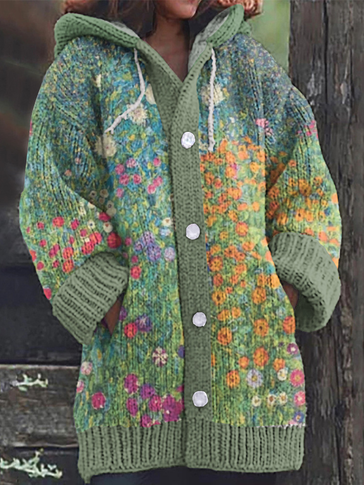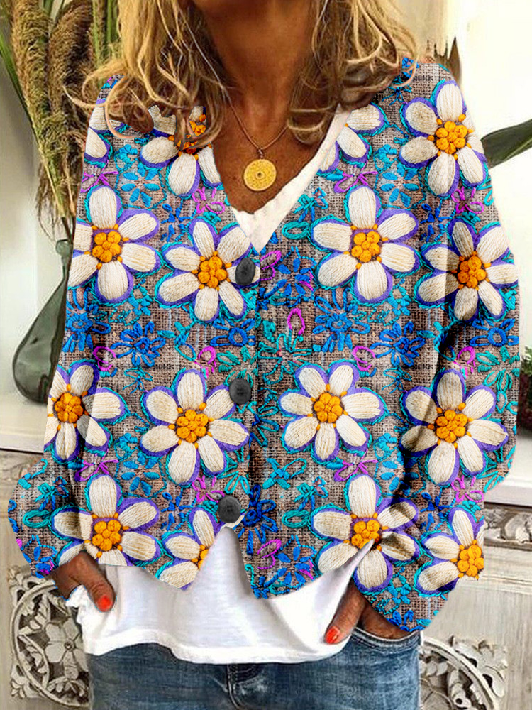 Retro Daisies Embroidery Pattern Cozy Cardigan