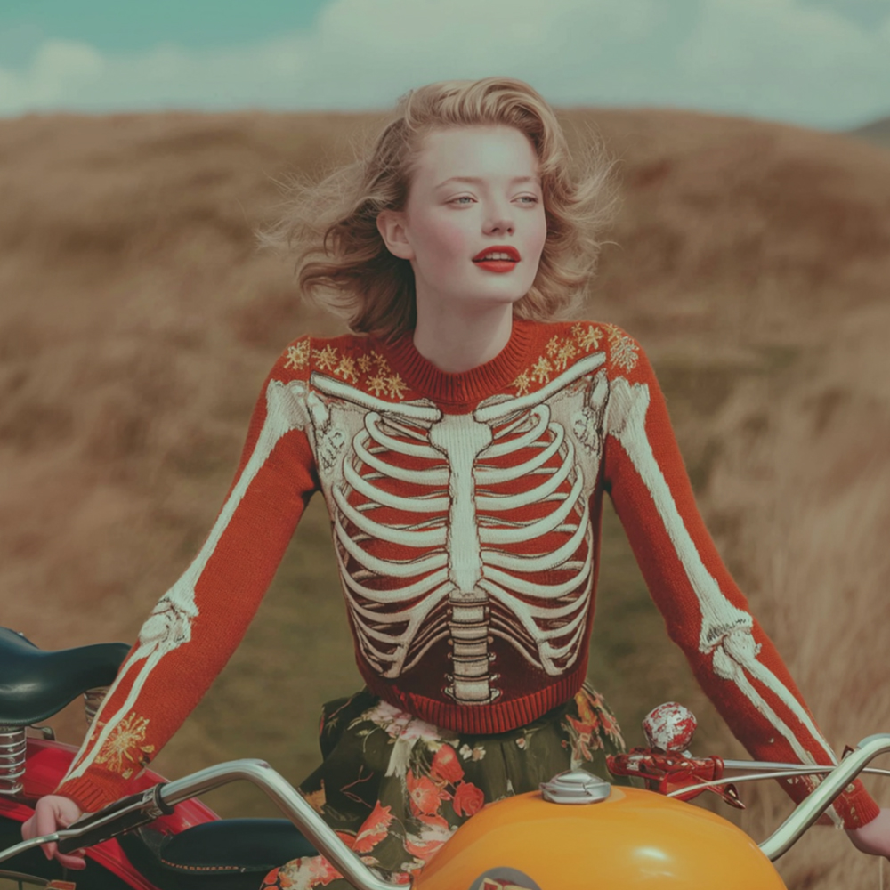 Vintage Skeleton & Heart Art Women's Knit Crew Neck Sweater