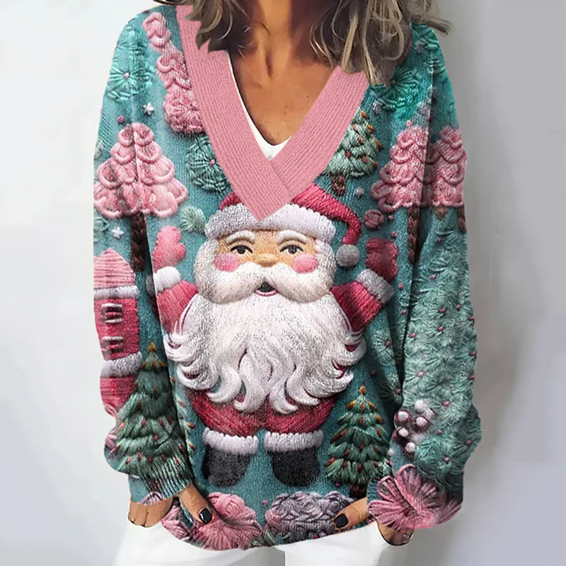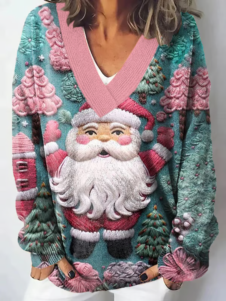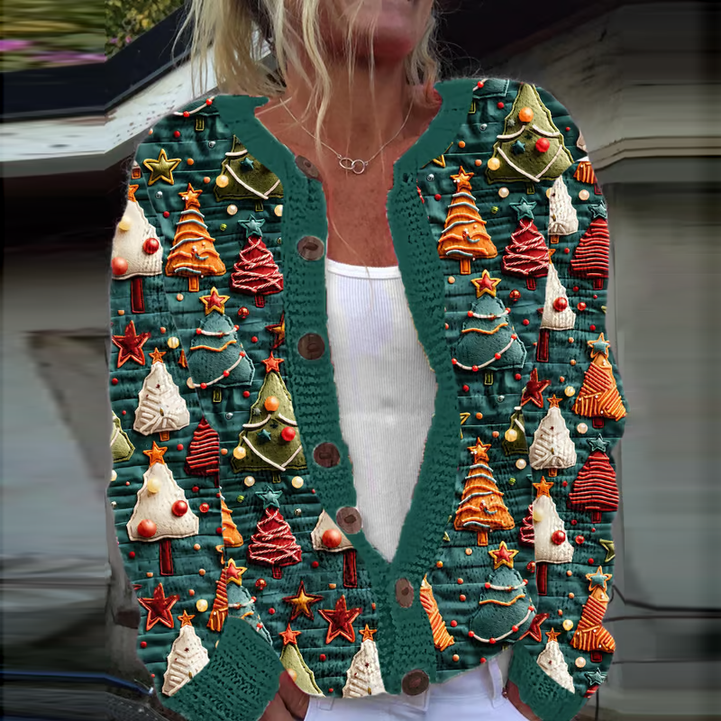 Vintage Christmas Colorful Christmas Tree Print Comfortable Sweater Knit Cardigan