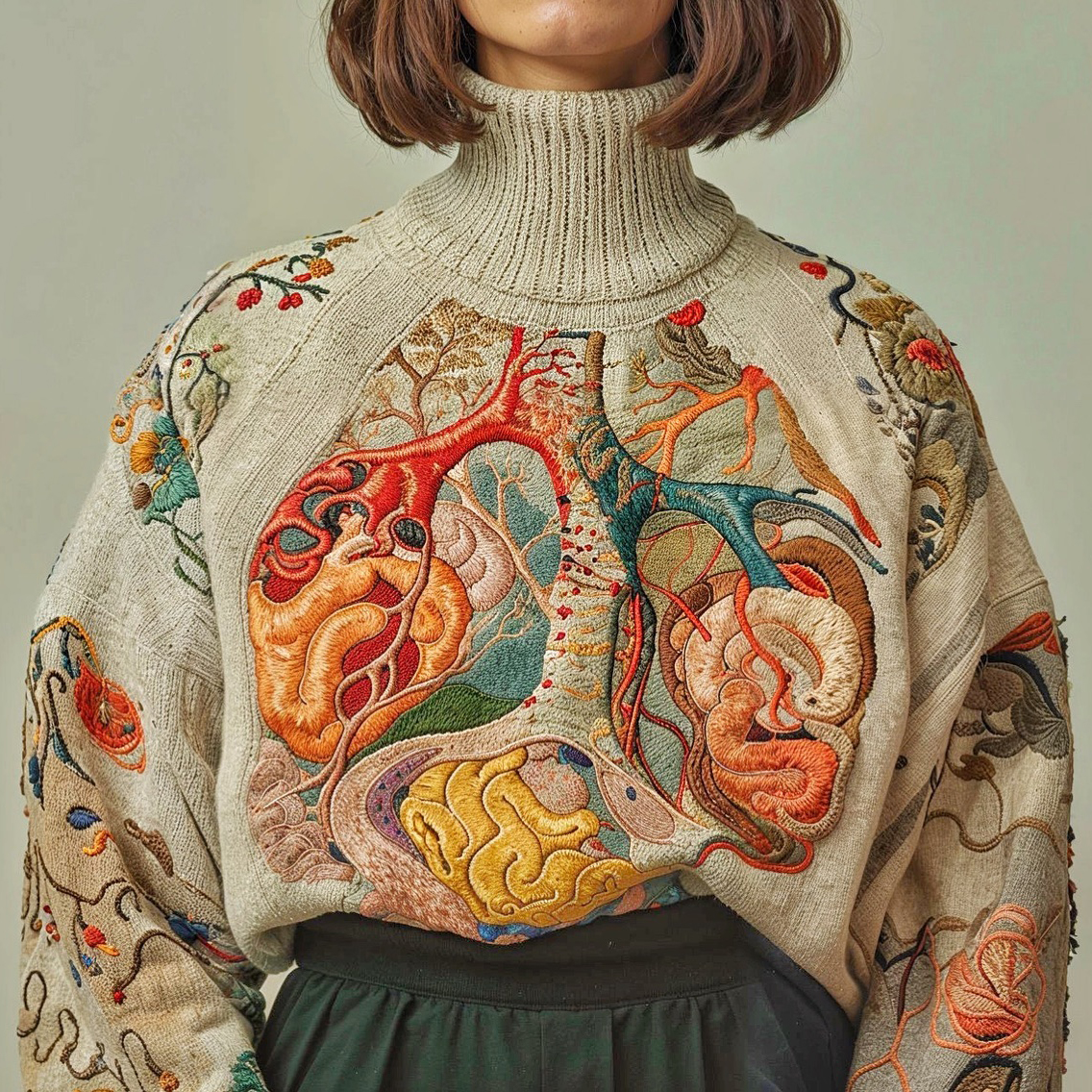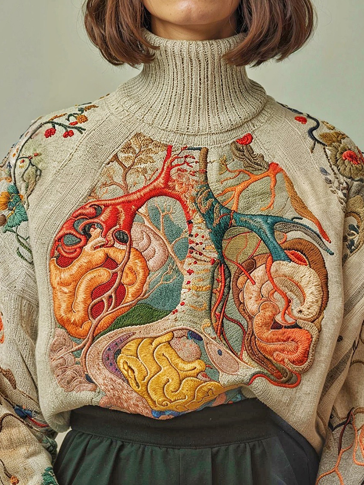 Vintage Halloween Colorful Anatomy Art Chunky Knitted Turtleneck Sweater