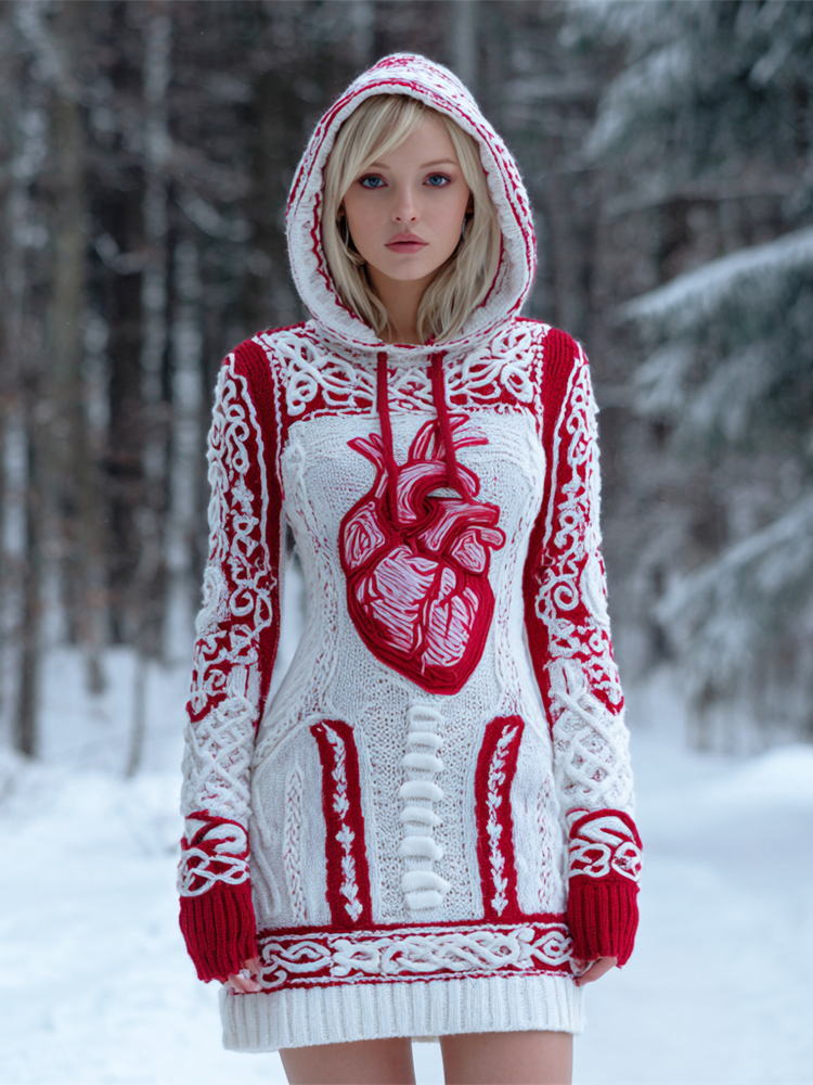 Halloween Anatomy Art Women's Knit Hooded Sweater Mini Dress