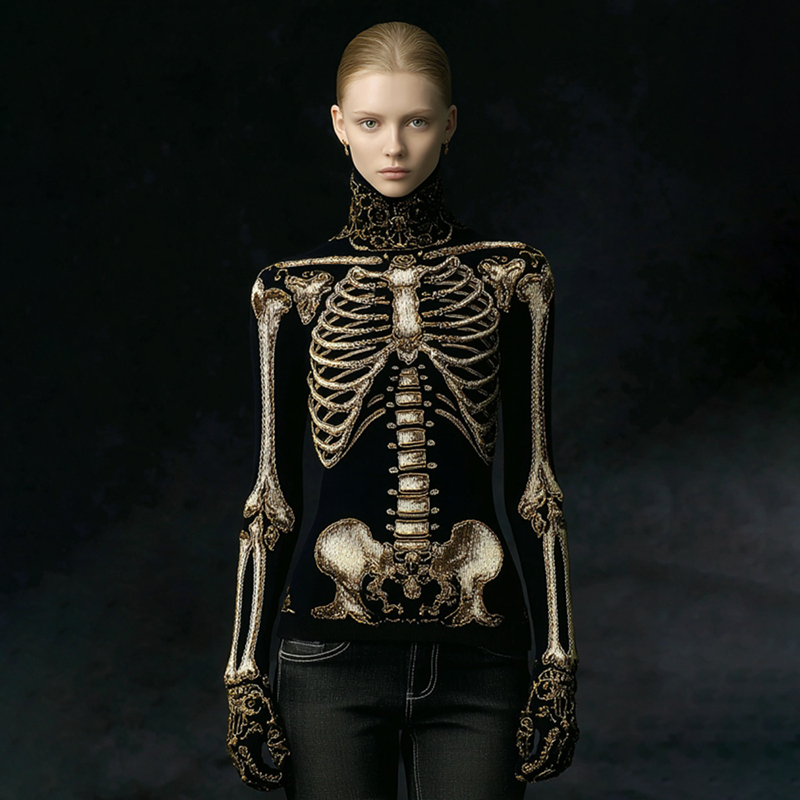 Women's Gothic Style Skeleton High Neck Cozy Sweater