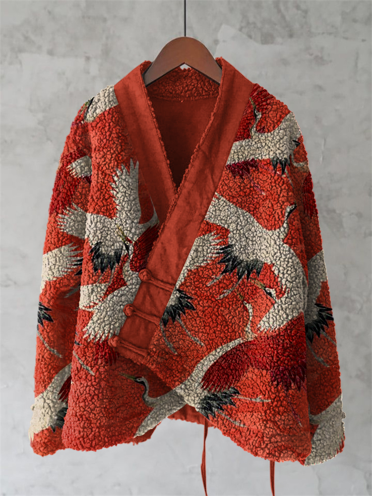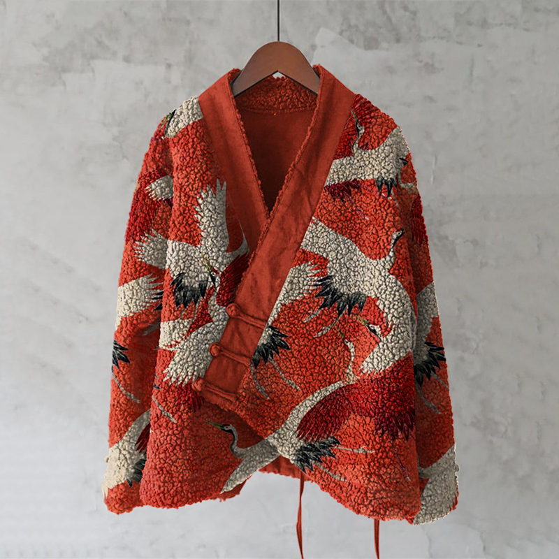 Vintage Japanese Style Cozy Fleece Kimono Cardigan