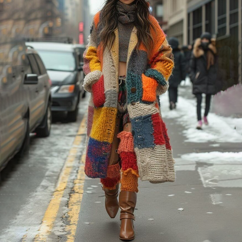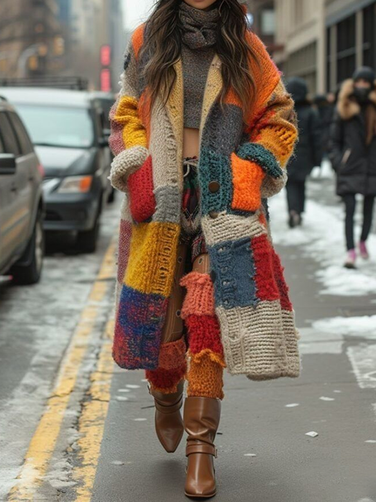 Vintage Unique Repairing Colorblock Patchwork Cozy Cardigan