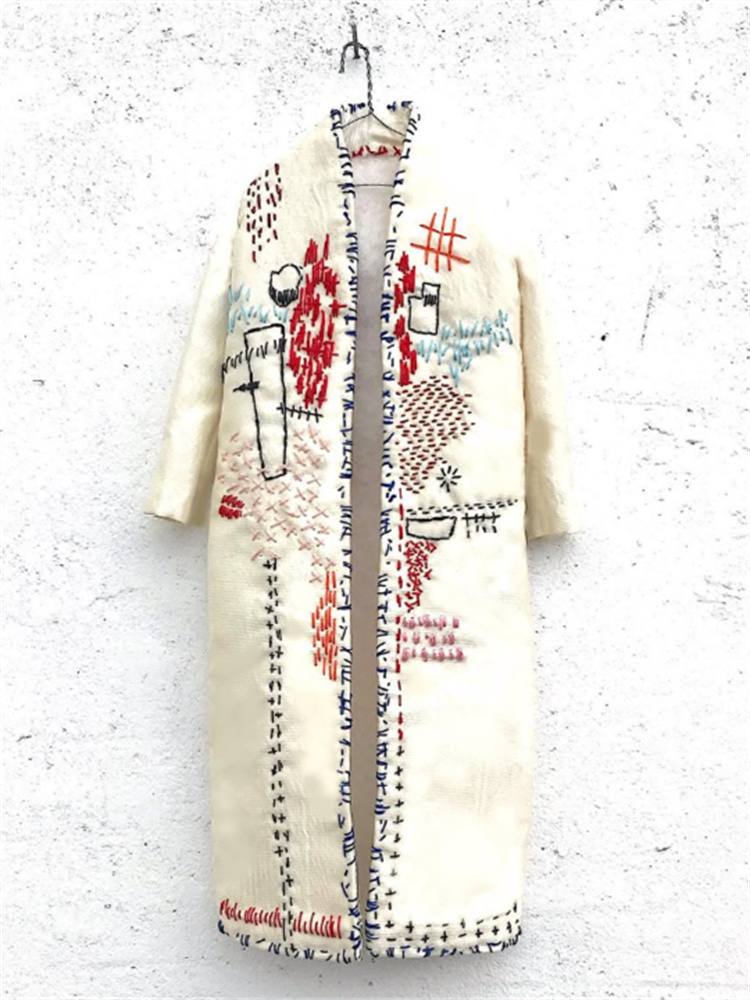 Unique Repairing Abstract Embroidered Cozy Knit Cardigan