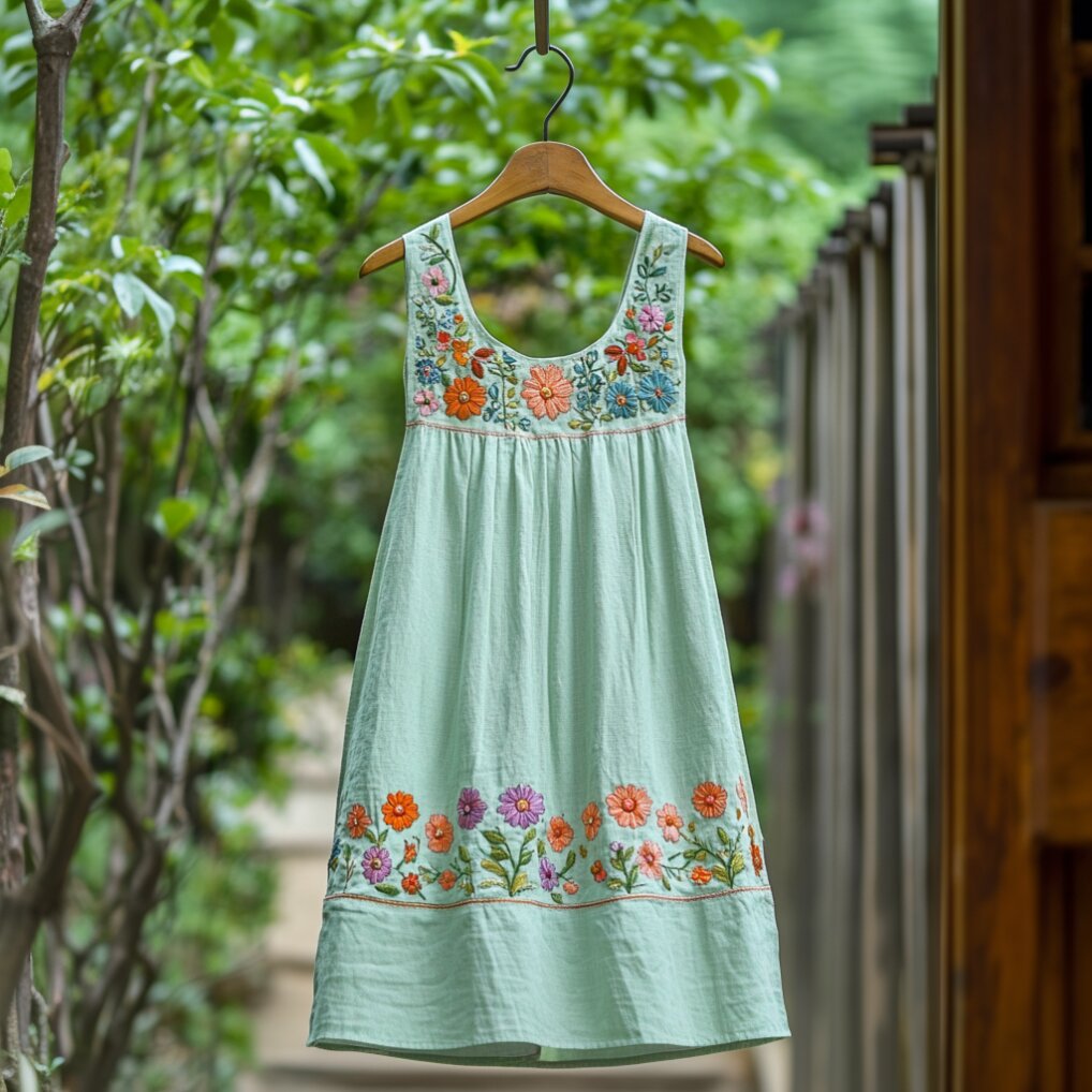 Women's Bohemian Floral Embroidered Linen Sleeveless Dress