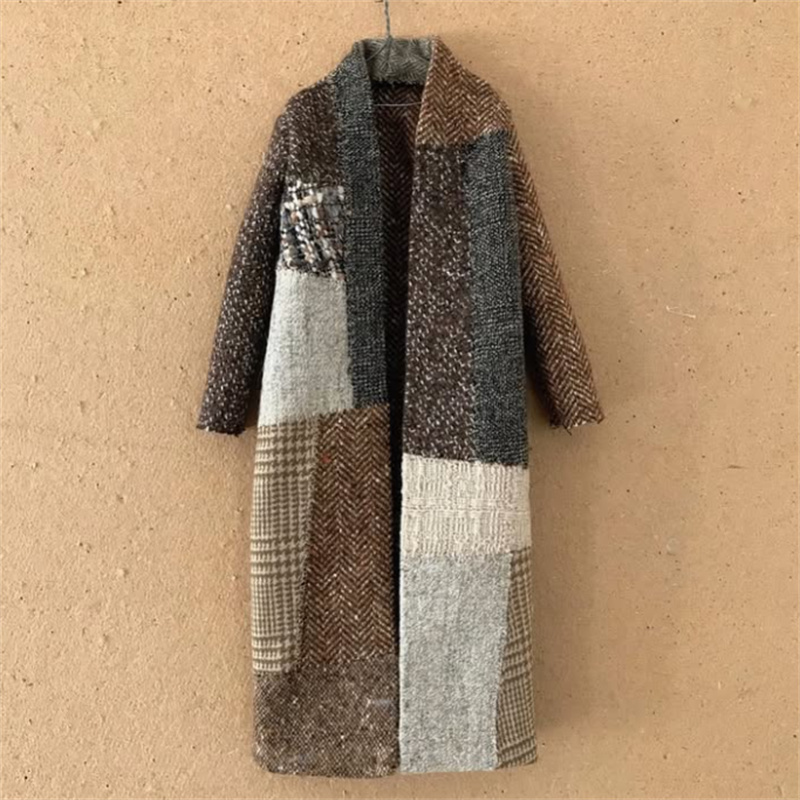 Repairing Colorblock Tweed Patchwork Cozy Long Cardigan