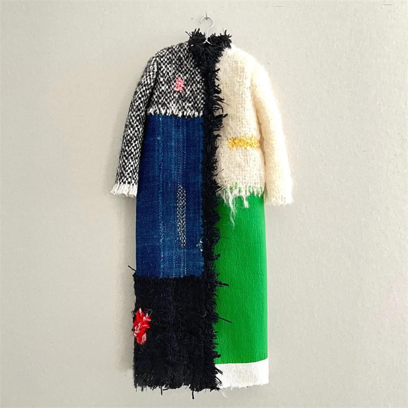 Repairing Tweed Patchwork Fiber Art Cozy Long Cardigan