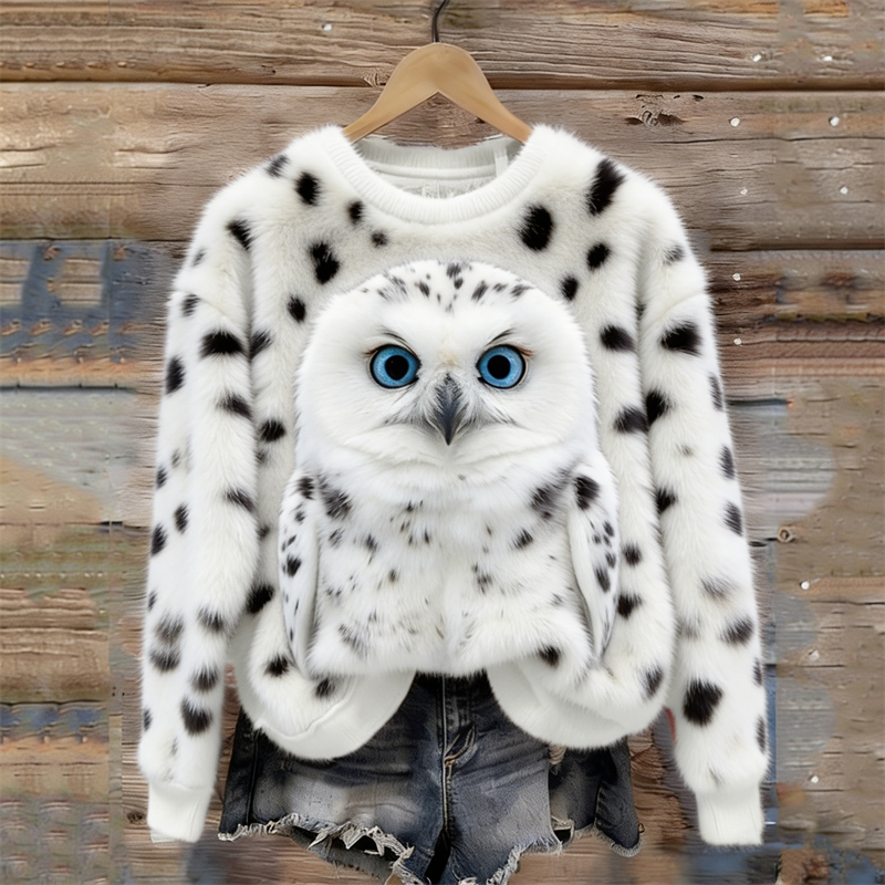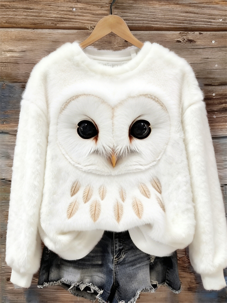Winter Snowy Owl Inspired Cozy Plush Sweatshirt