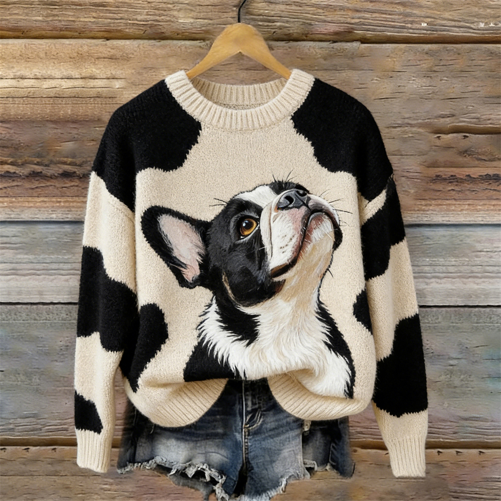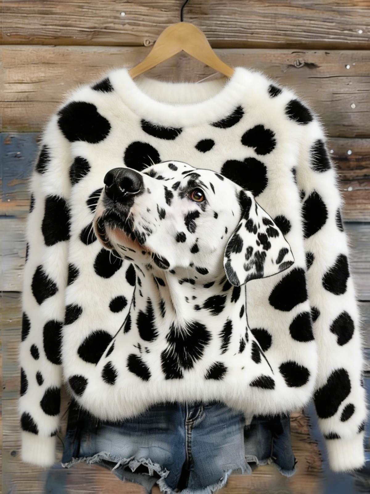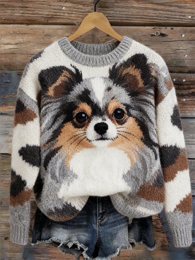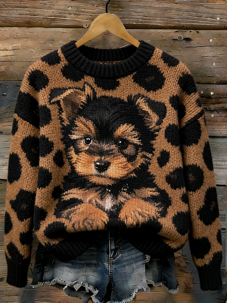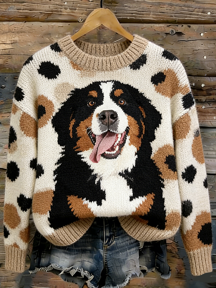 Cute Pet Dog Irregular Print Women's Casual Sweater