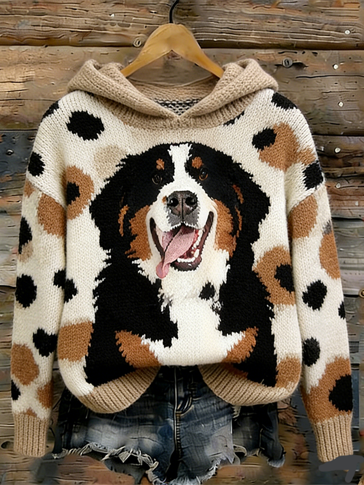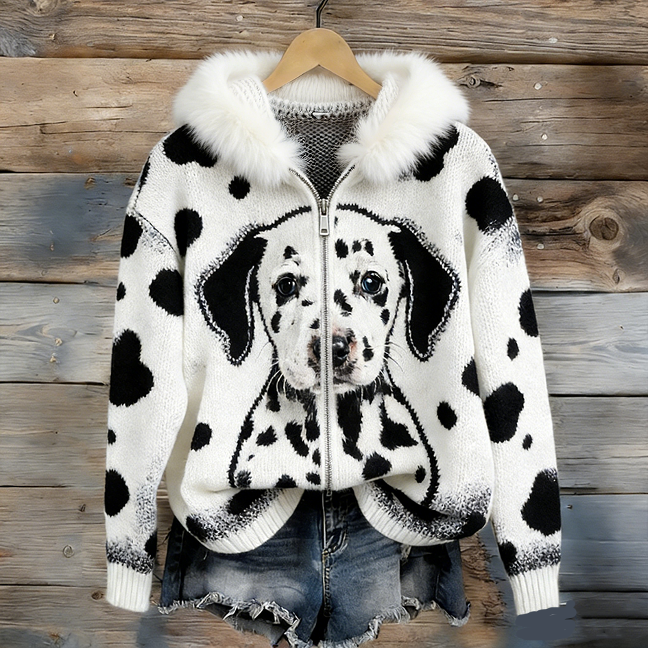 Spot Dog Pattern Printed Women's Hooded Sweater Coat