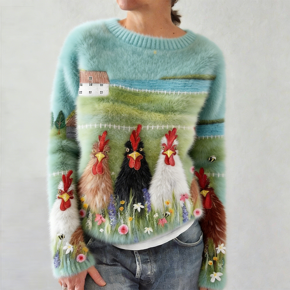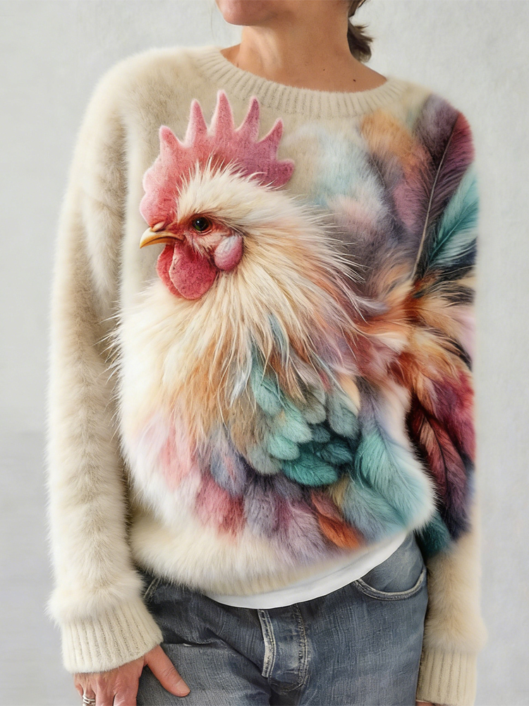 Farm Chicken Art Round Neck Cozy Plush Sweatshirt