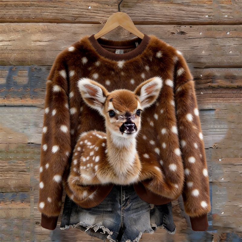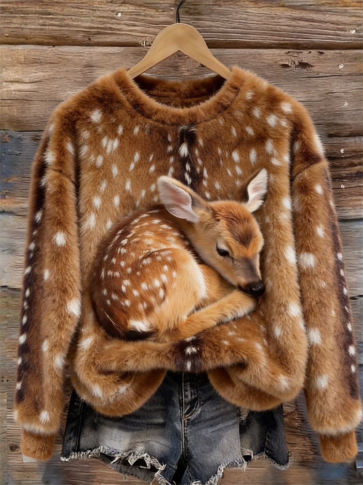 Lovely Baby Deer & Pattern Cozy Plush Sweatshirt