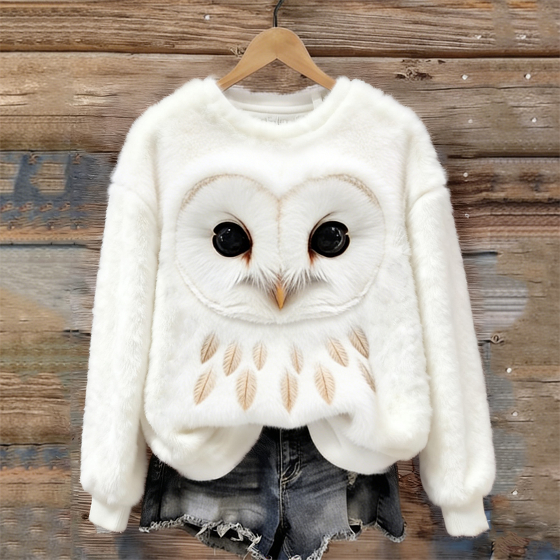 Forest White Owl Inspired Cozy Plush Sweatshirt