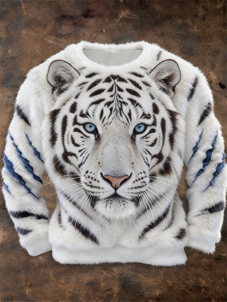Men's White Tiger Inspired Scratch Cozy Plush Sweatshirt