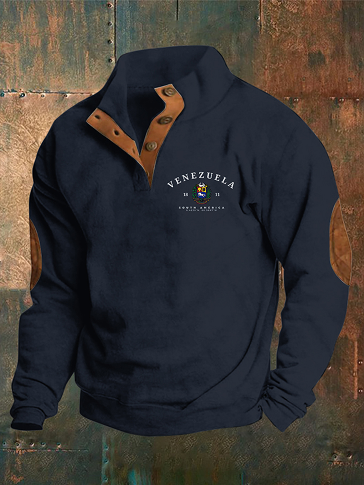 Men's Venezuelan Print Stand Collar Button Sweatshirt