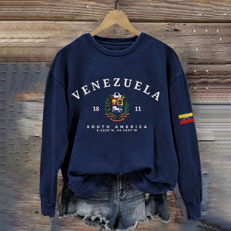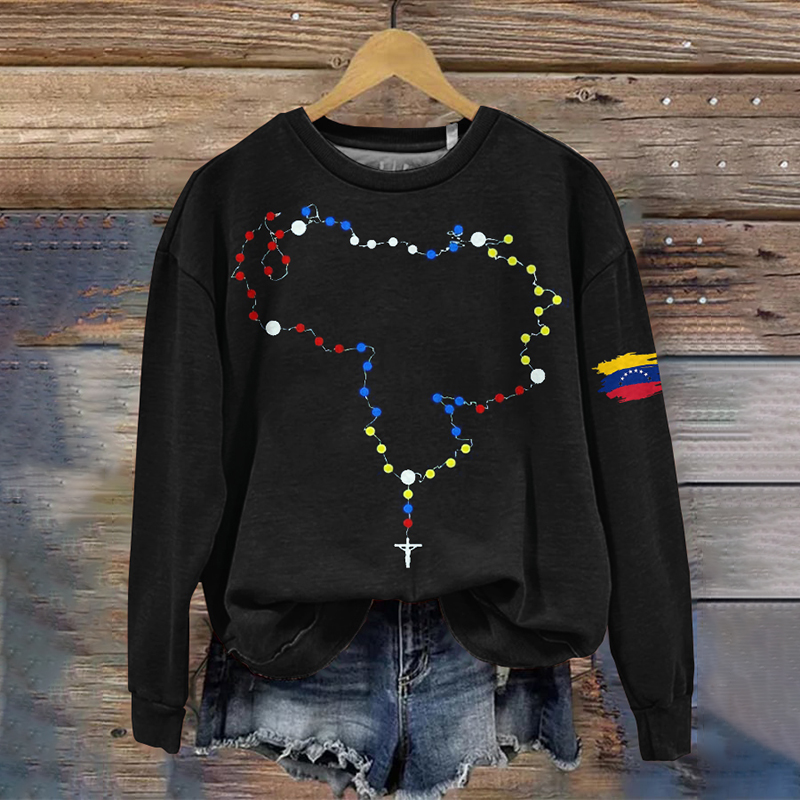 Women's Venezuelan Print Crew Neck Casual Sweatshirt