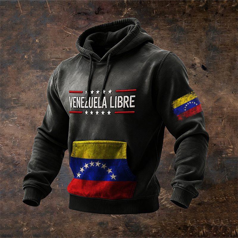 Men's Venezuela Libre Flag Patchwork Washed Hoodie