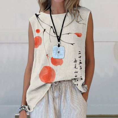 Floral Art Printed Casual Sleeveless Top