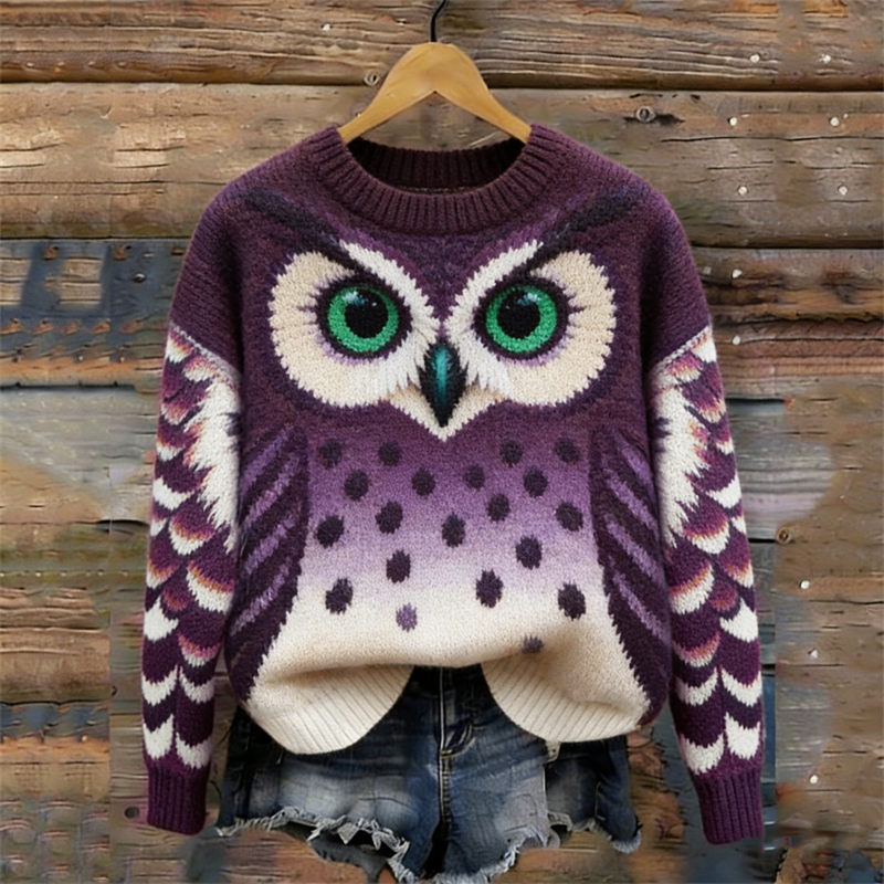 Forest Owl Inspired Contrast Gradient Cozy Knit Sweater
