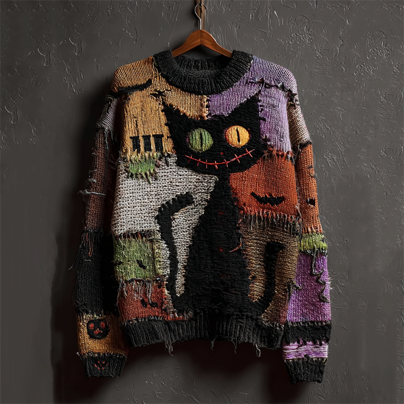 Halloween Black Colorblock Stitched Cozy Knit Sweater