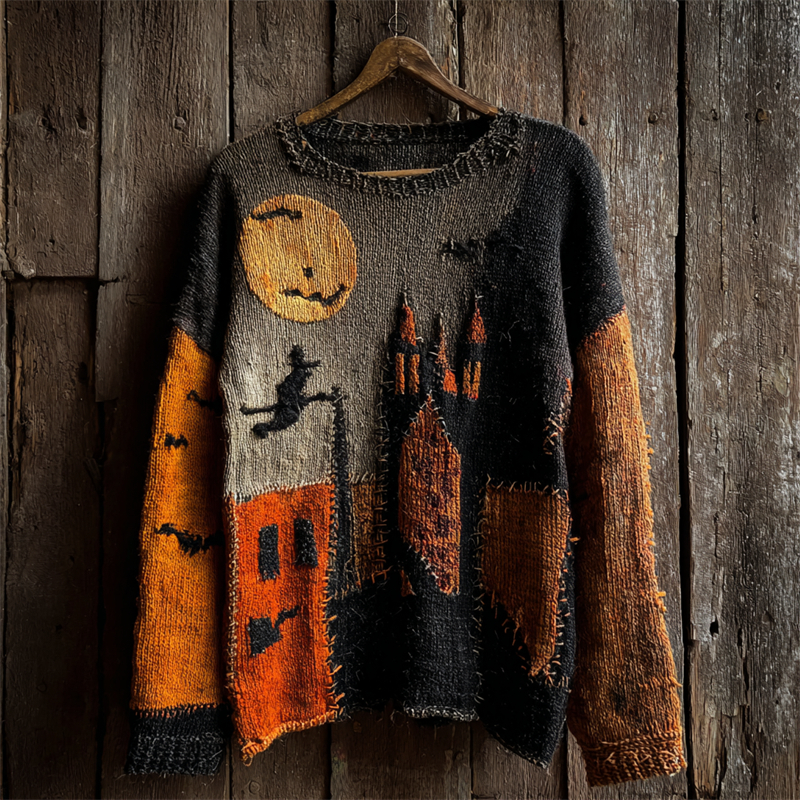 Halloween Night Witch Contrast Cozy Knit Sweater