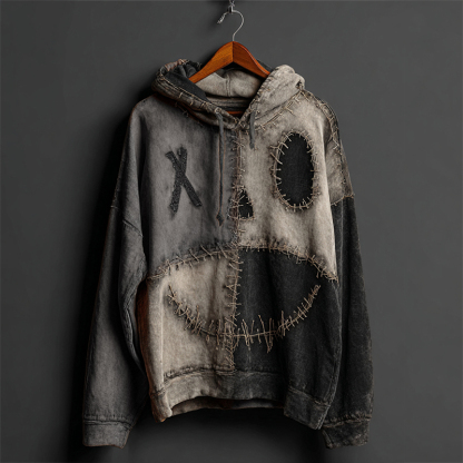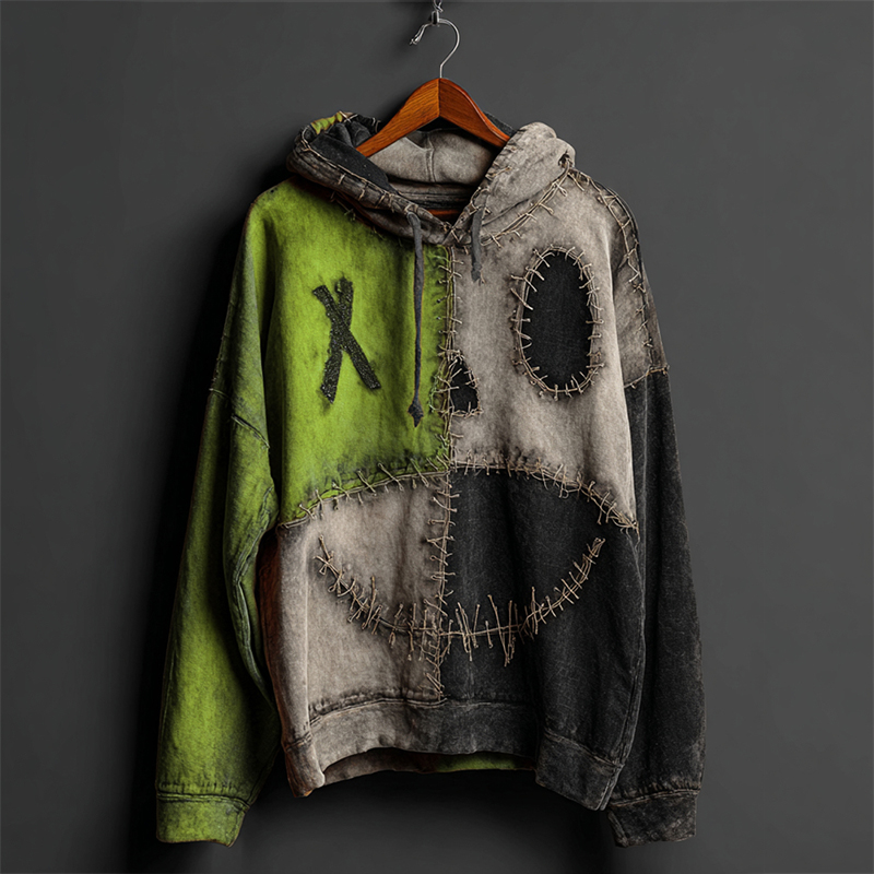 Halloween Pumpkin Face Colorblock Patchwork Hoodie