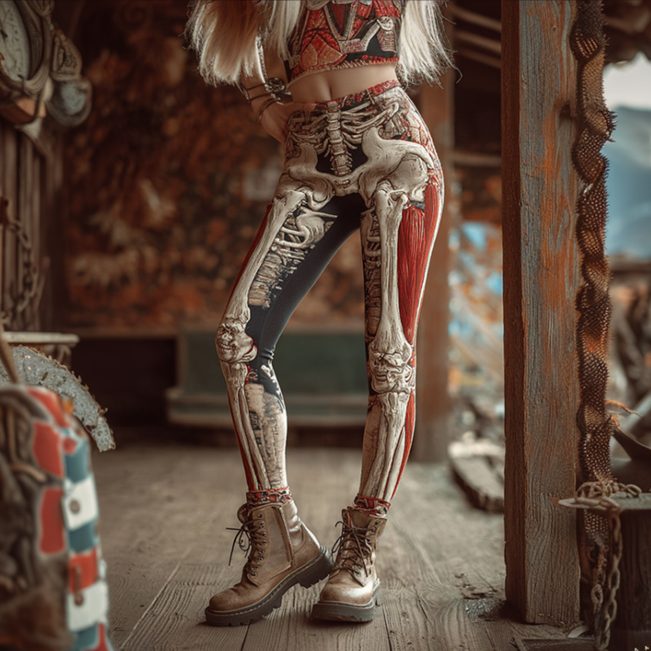 Halloween Theme Skeleton And Human Bone Pattern Women's Tight-fitting Leggings